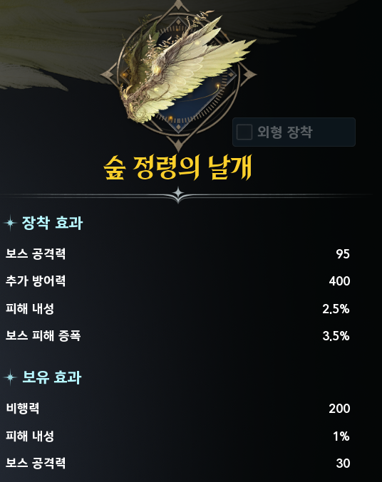 - 날개는 보유만 해도 능력치 적용