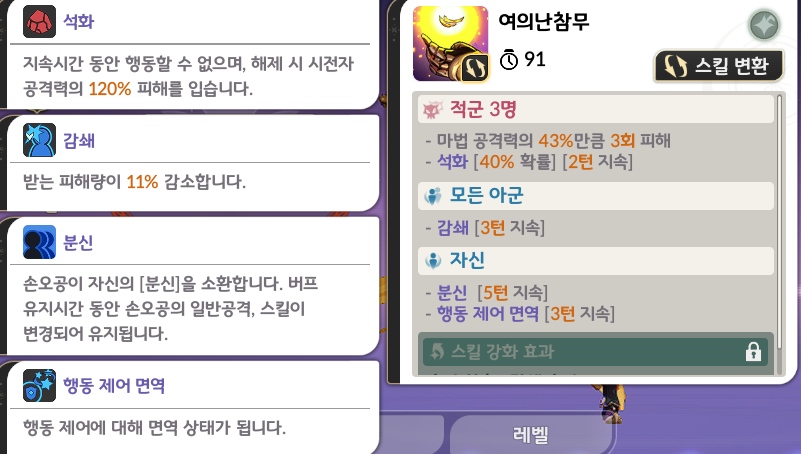특히 핵심 스킬인 여의난참무를 기준으로 성능이 극적으로 변화합니다.