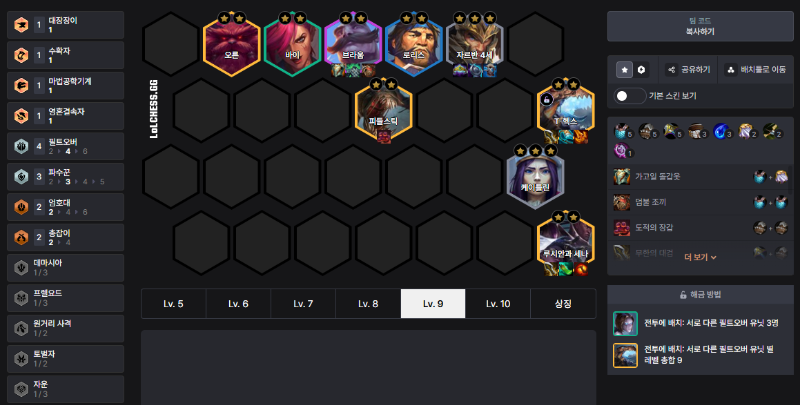 ⚔️ 오른, 👻 피들스틱, 🔫 루시안, 🐲 쉬바나, 💎 타릭 등의 강력한 유닛을 배치해 마무리합니다.