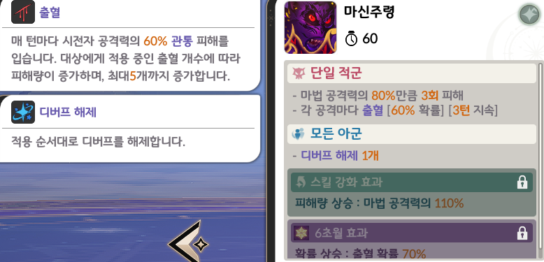 🩸 스킬 ② 마신 주령 – 출혈과 파티 안정성