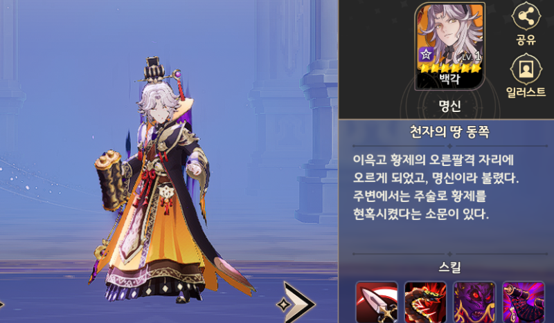 백각은 만능형 역할군으로 등장한 전설 영웅입니다.