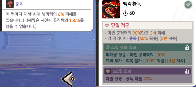 ☠️ 스킬 ① 백각 환독 – 중독 누적의 핵심