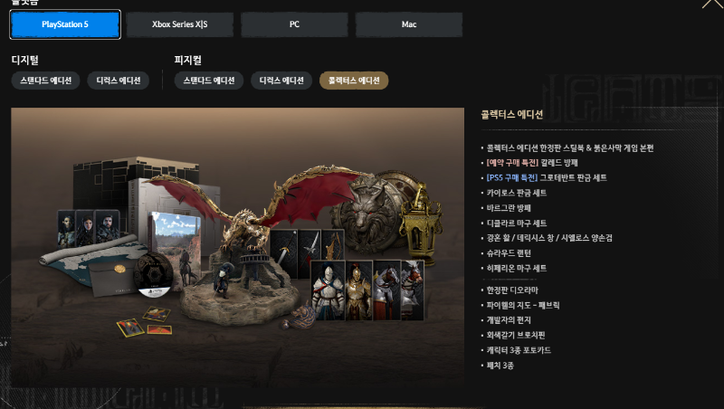 - PS5 버전 사전예약 시 전용 방어구 세트 추가 지급