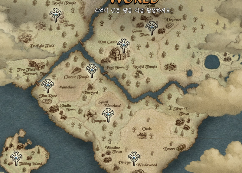 2000년대 초반 기란 마을 업데이트 시점의 구조를 기반으로, 다크엘프 이전 4대 클래스(기사·요정·법사·군주) 체제로 운영되는 하드코어 리니지의 원형이라 할 수 있습니다.