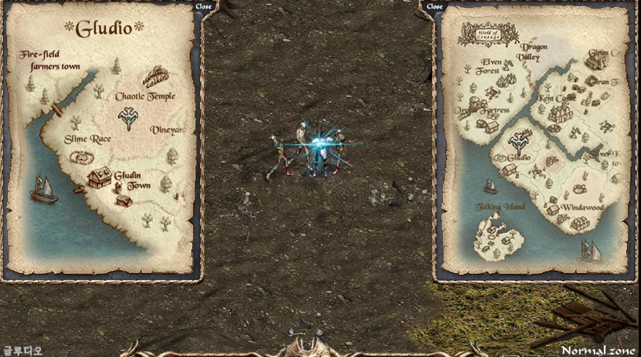 👉 말하는 섬 필드 → 말하는 섬 던전 → 글루디오 던전 → 개미굴 - 플레이 방향