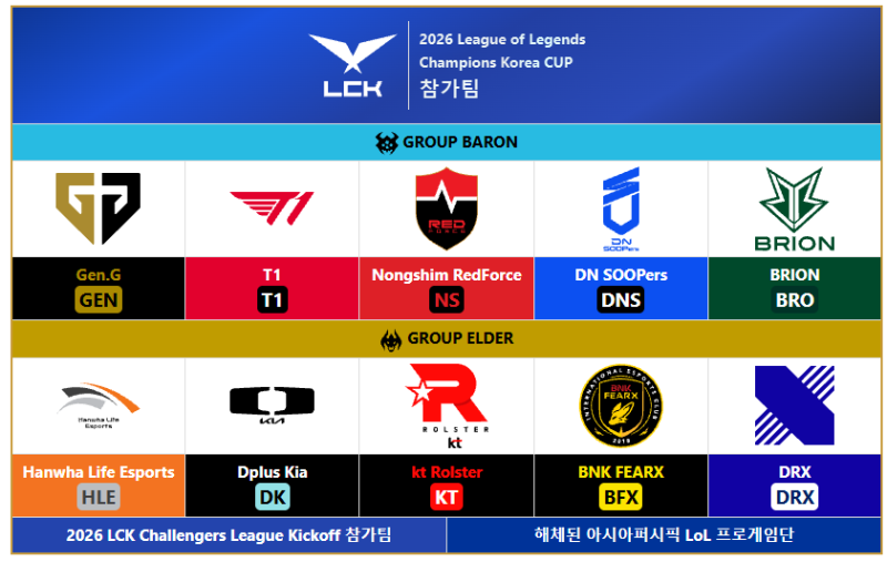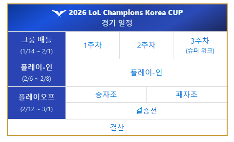 - 대회 명칭 : 2026 LoL Champions Korea CUP (LCK CUP)